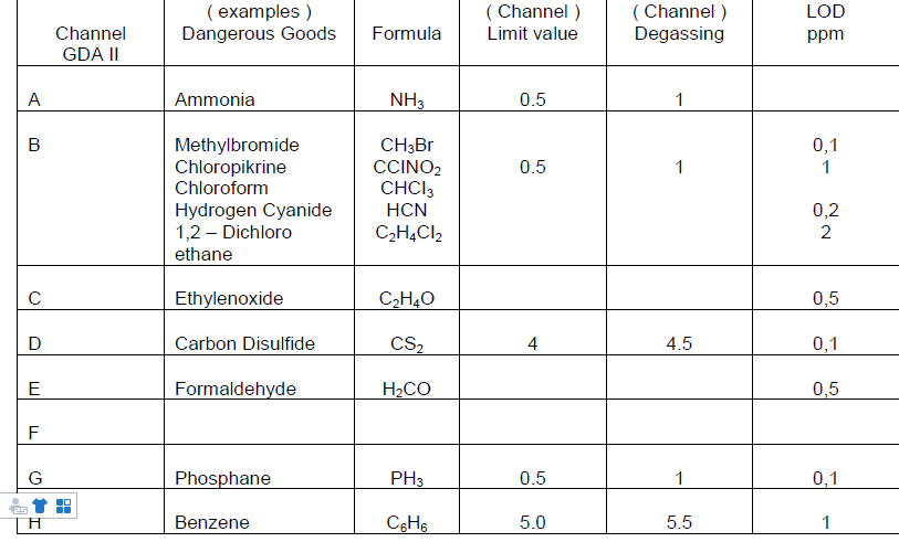 GDA-FR主要用作港口工人和海关当局使用的便携式电池式检测装置。在进入容器之前要进行测量,以确定容器是否被熏蒸剂污染。由港口工人进行的测量只需几秒钟,以避免在清关时出现延误。由于测量过程所显示的结果提供了关于在打开容器之前容器内气体成分所造成的危险程度的信息。在实践中是注意不同的渠道。为此,以下建议已经发布,汉堡海关当局已成功采用。
