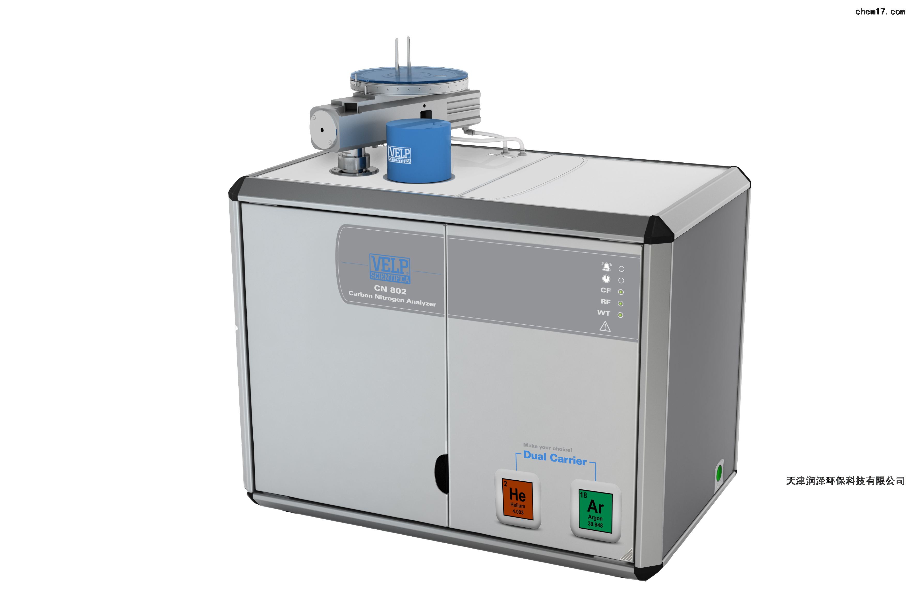 CN燃烧法首先在燃烧管内对样本进行燃烧,生成元素化合物 。水蒸气被位于燃烧管后方的(WT1)di一步物理脱水装置(DriStepTM)进行去除,剩余的水分通过第二部化学脱水( WT2)去除。在两部脱水环节之间的是还原管(RF)。IR近红外传感器可以准确测定CO2的含量。接下来气体被 运载到可以复性再生的CO2吸附器(CO2),终只有N2被运载至具有LoGasTM技术的热导检测器(TCD)进行检测,无需 参照气体。每个样本的检测需3-4分钟。